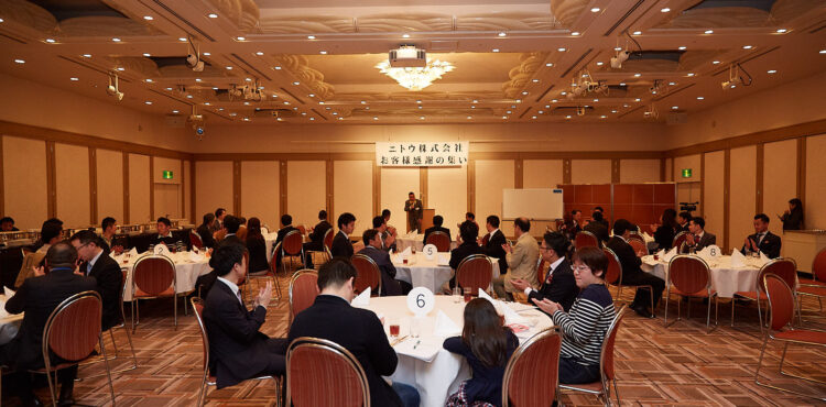 NITOHでは、日頃のお客様へ感謝の気持ちを込めた「お客様感謝の集い」を品川プリンスホテルにて開催させて頂きました。去る3月10日に開催され、懇親の意味も込めたにぎやかな催しになりました。